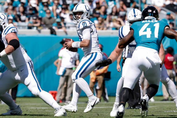 When the game was still marginally close, the Colts failed to establish any kind of running game. Now, I understand, the Jags are one of the league’s best run-defending teams in the league, they stuffed the Indy running game in the earlier meeting and they spent most of the game in a seven-man front. And with the Colts using a tight end to help Blake Freeland at right tackle, that took another target out of equation. But when Gardner Minshew is your quarterback, you’ve got to force the issue in the run game. Yeah, the Jags are strong in this area, but the Colts have one of the highest paid offensive lines in the league and just extended Jonathan Taylor to the tune of $42 million over three years. They ran the ball just eight times in the first half, 17 total. That’s not enough, especially in the first half. Not even close. I’ll take my chances going strength on strength. Zack Moss ran for 21 yards. Taylor ran for 19. Taylor had a nice 40-yard catch-and-run; eventually, he’ll find his game.